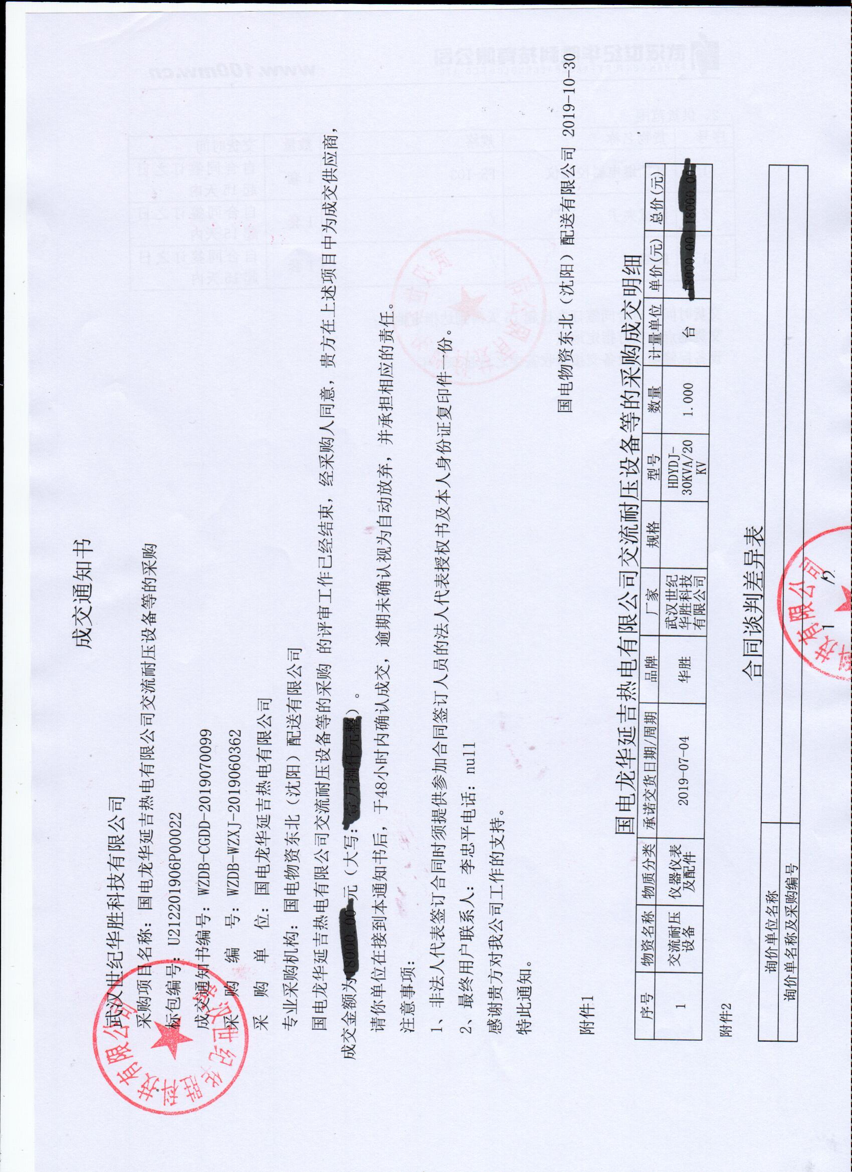 國電龍華延吉熱電有限公司交流耐壓設備等的采購